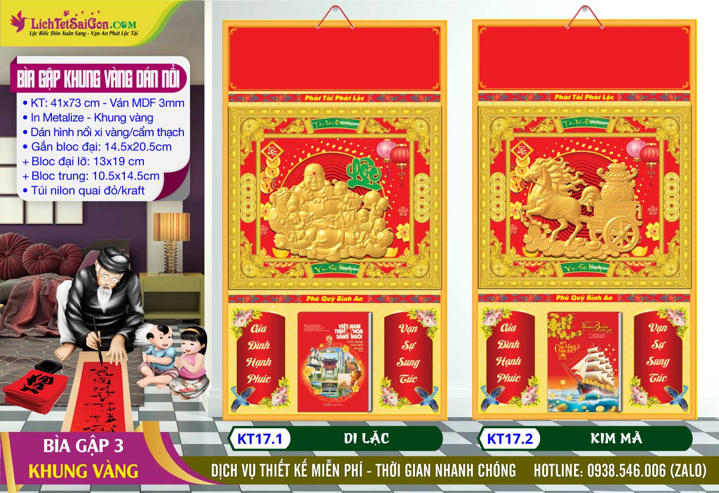 1. Bìa Gấp (41x73cm) Khung Vàng – KT17.1 – Di Lặc + KT17.2 – Kim Mã