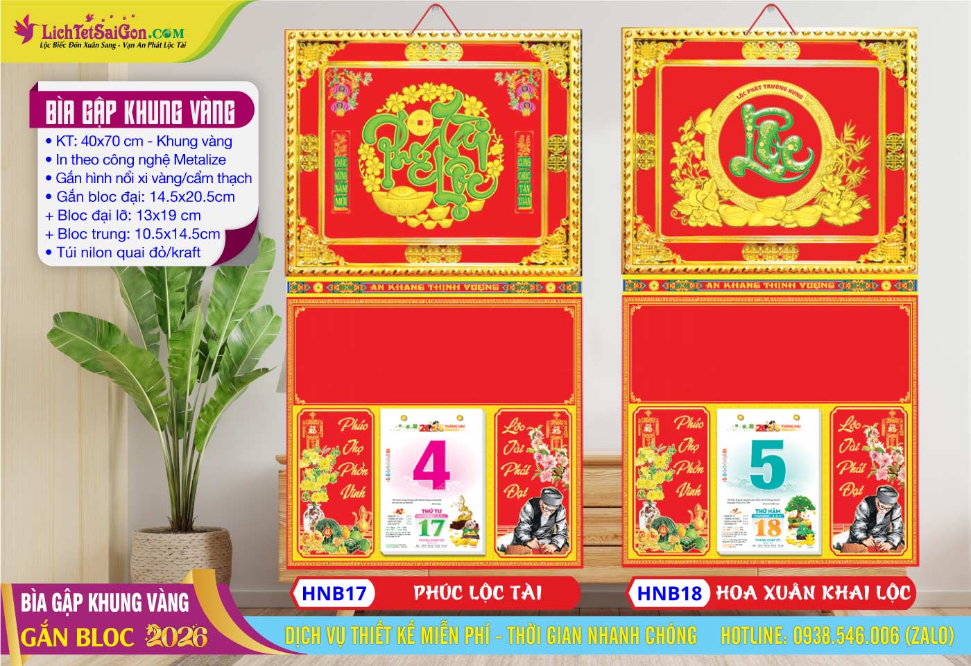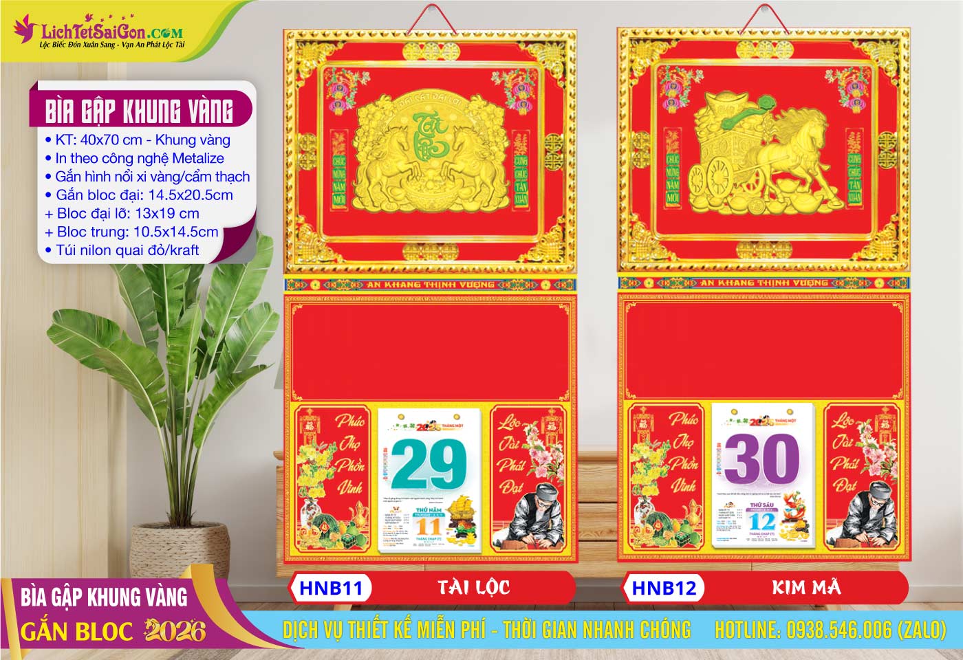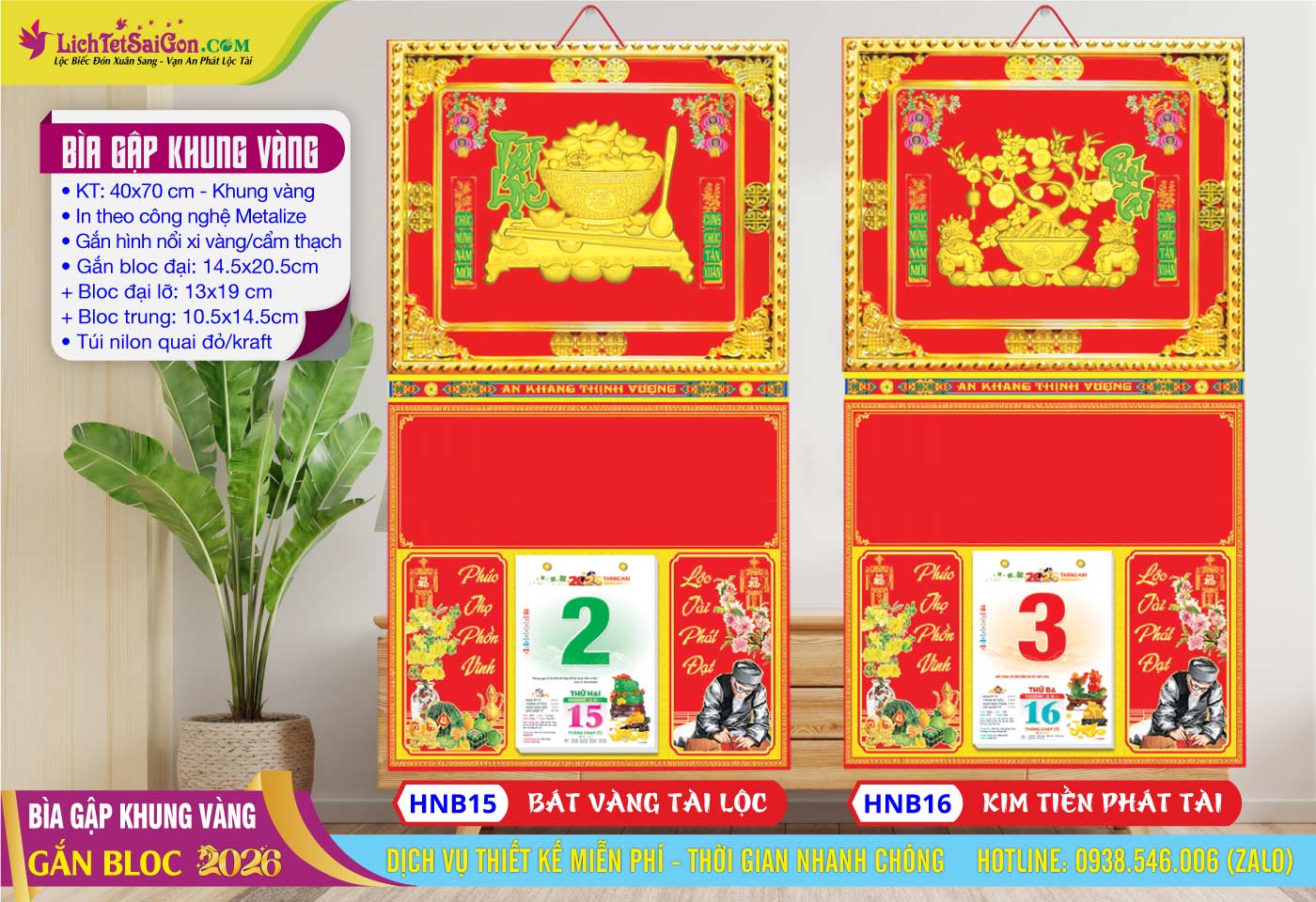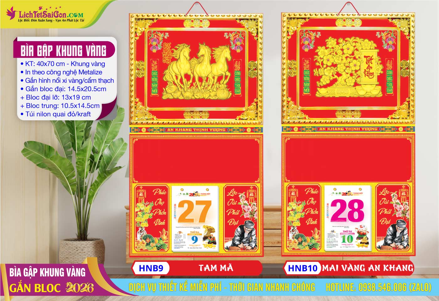 B – Bìa Gấp Khung Vàng (40×70) Gắn Bloc 2026