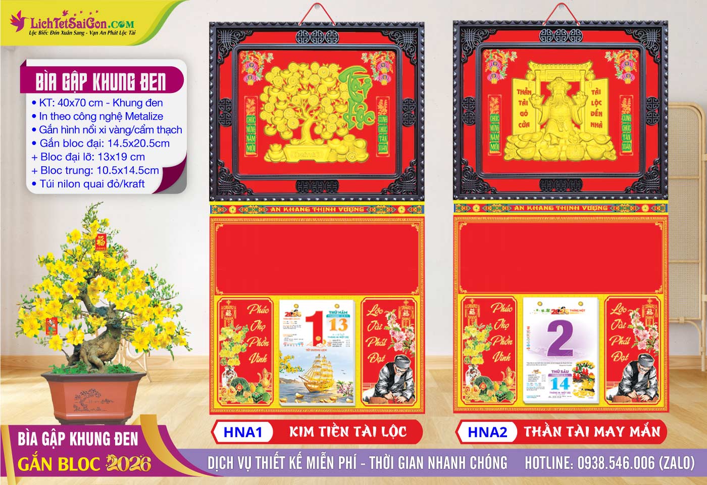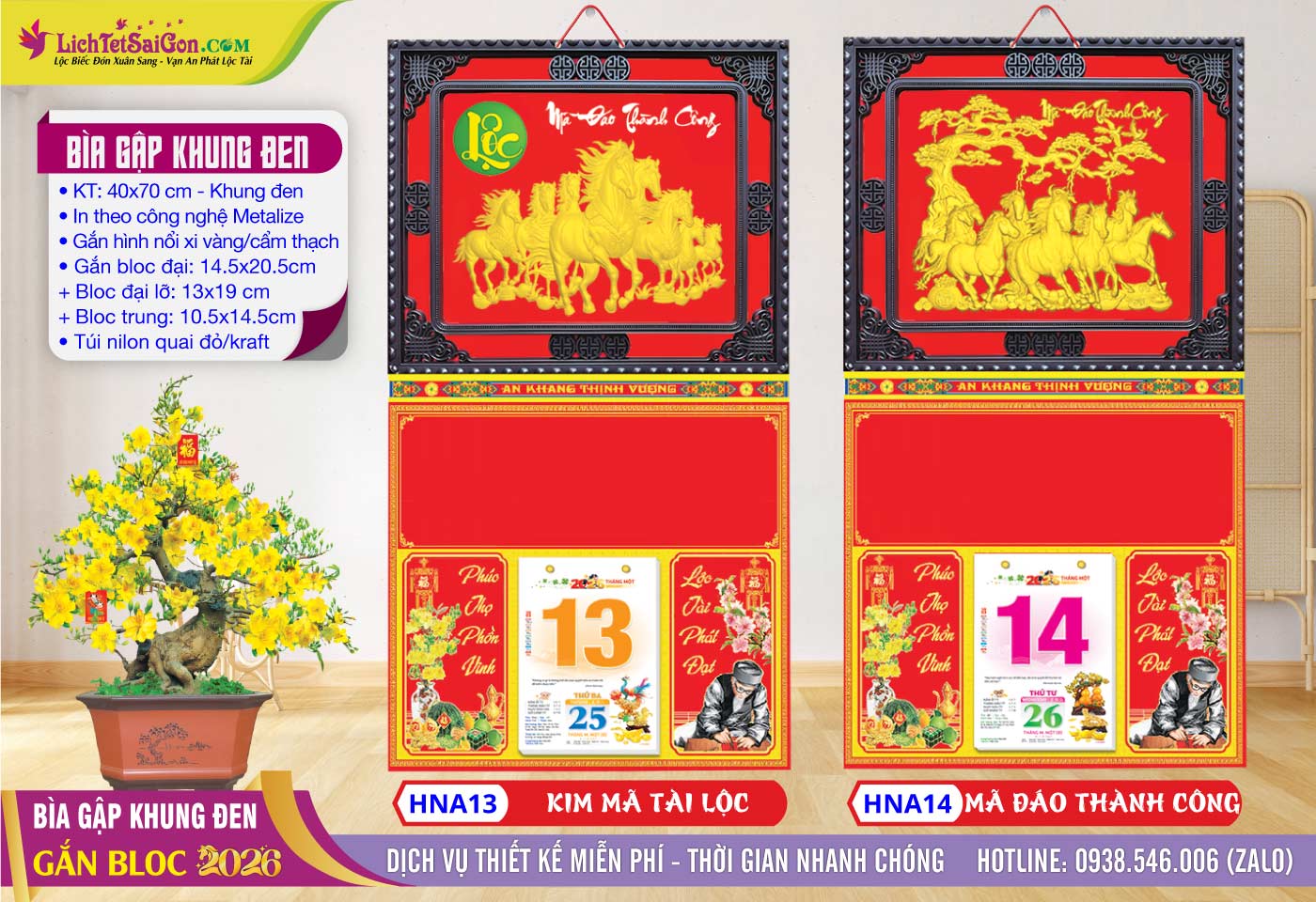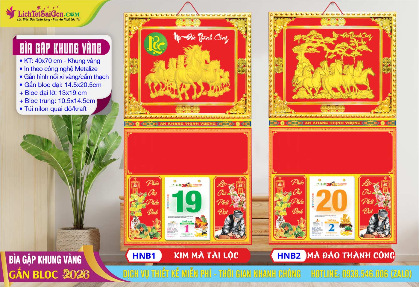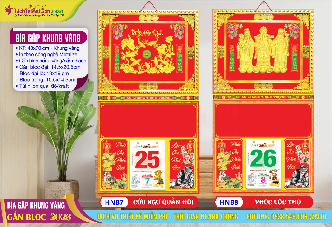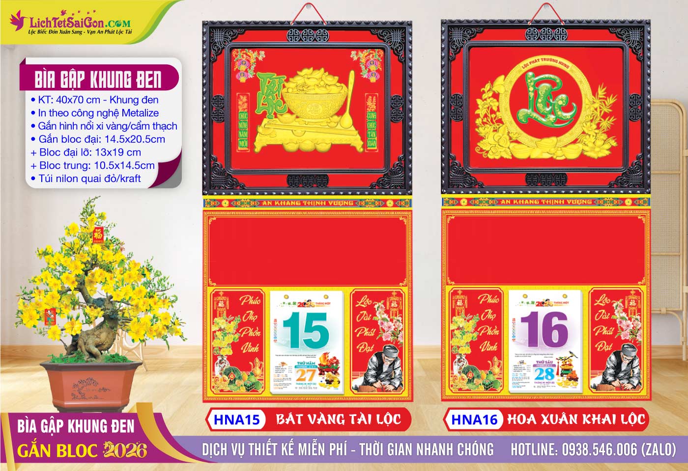 B – Bìa Gấp Khung Vàng (40×70) Gắn Bloc 2026