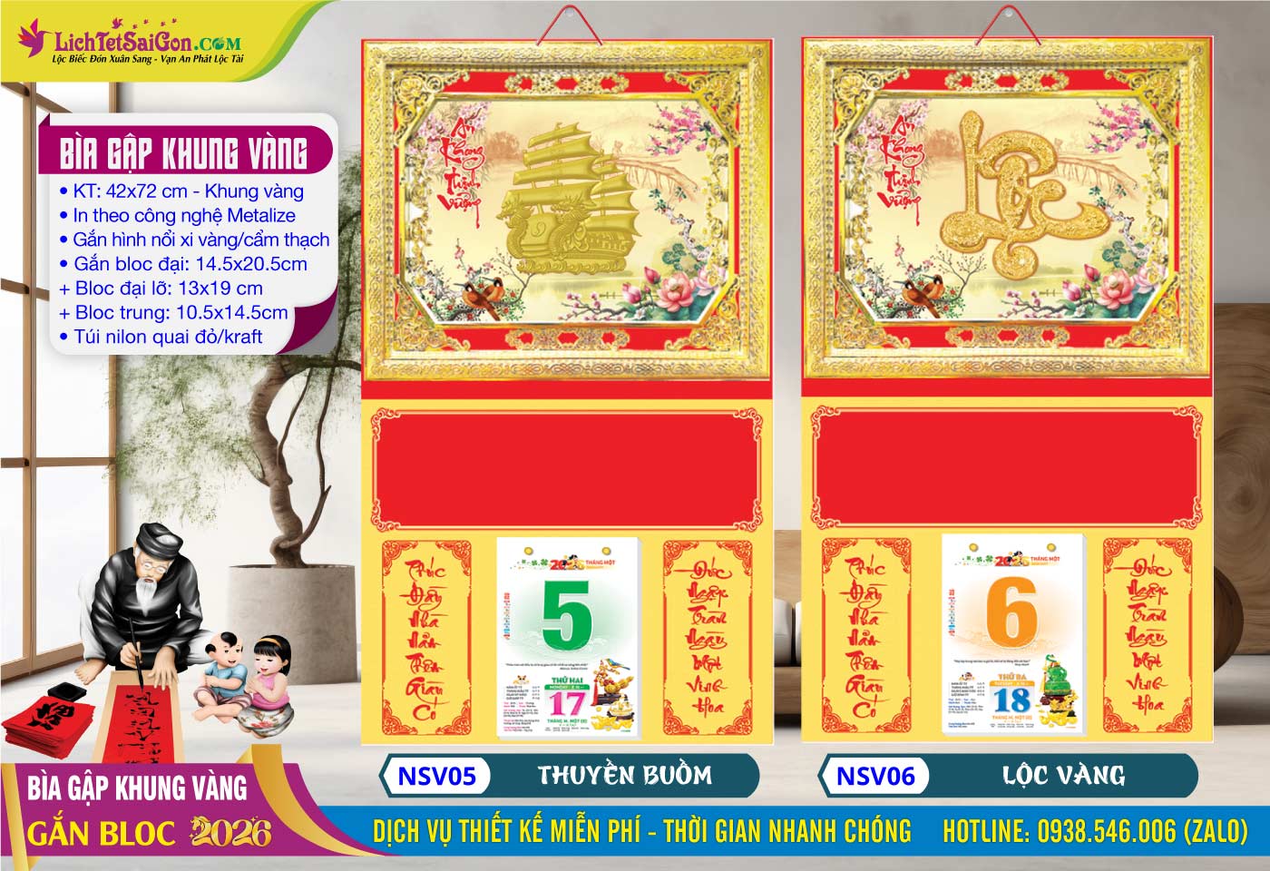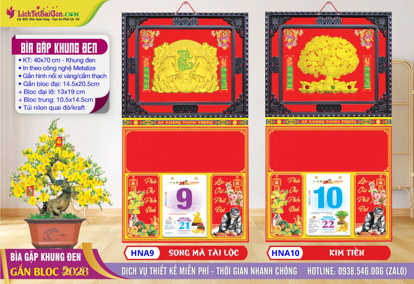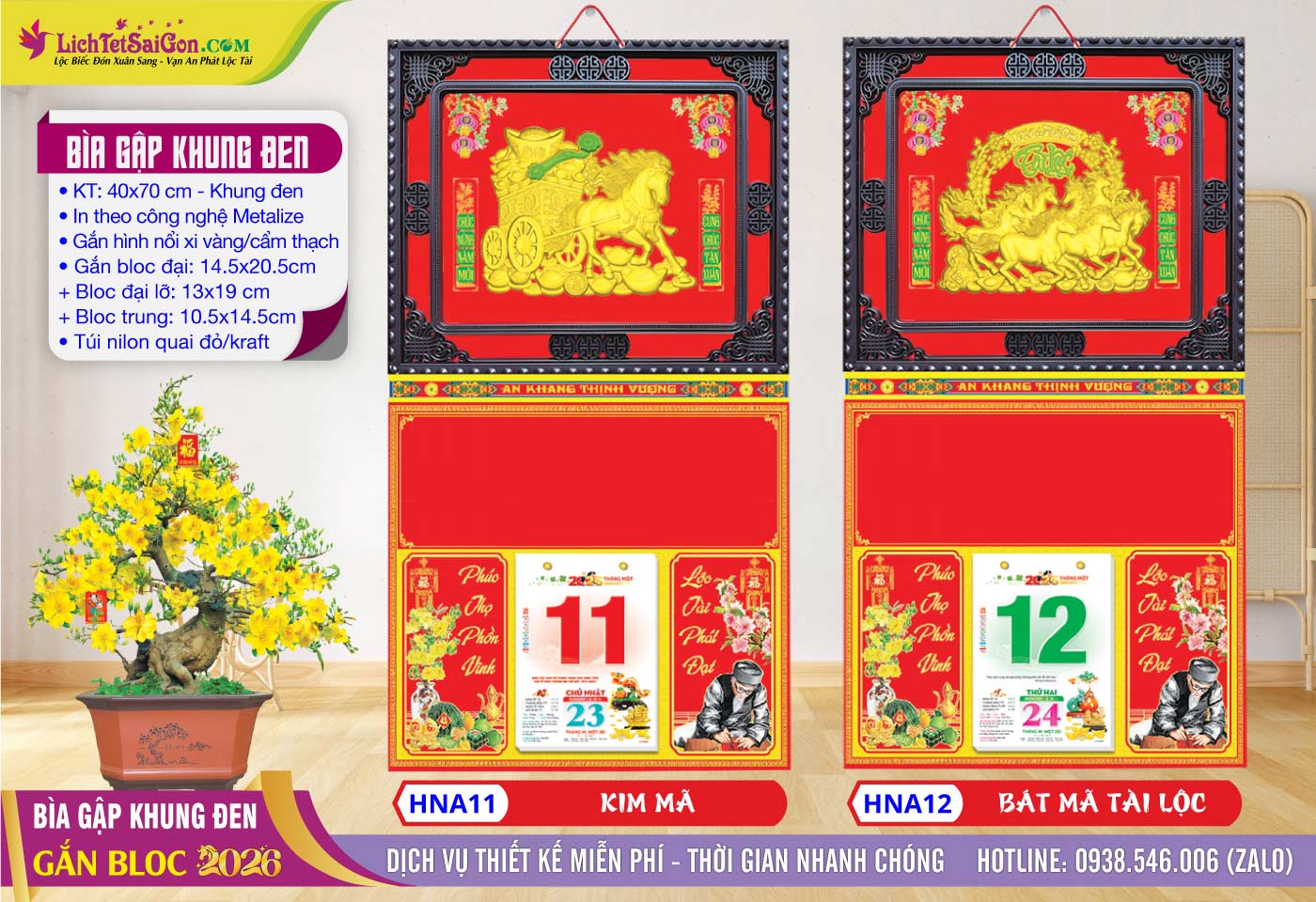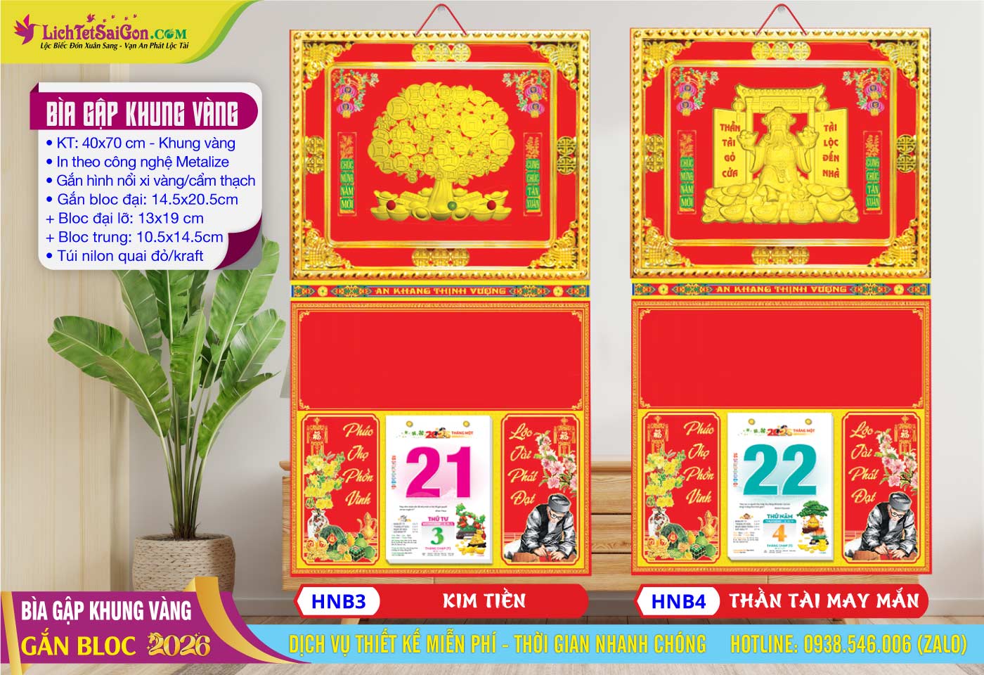 B – Bìa Gấp Khung Vàng (40×70) Gắn Bloc 2026