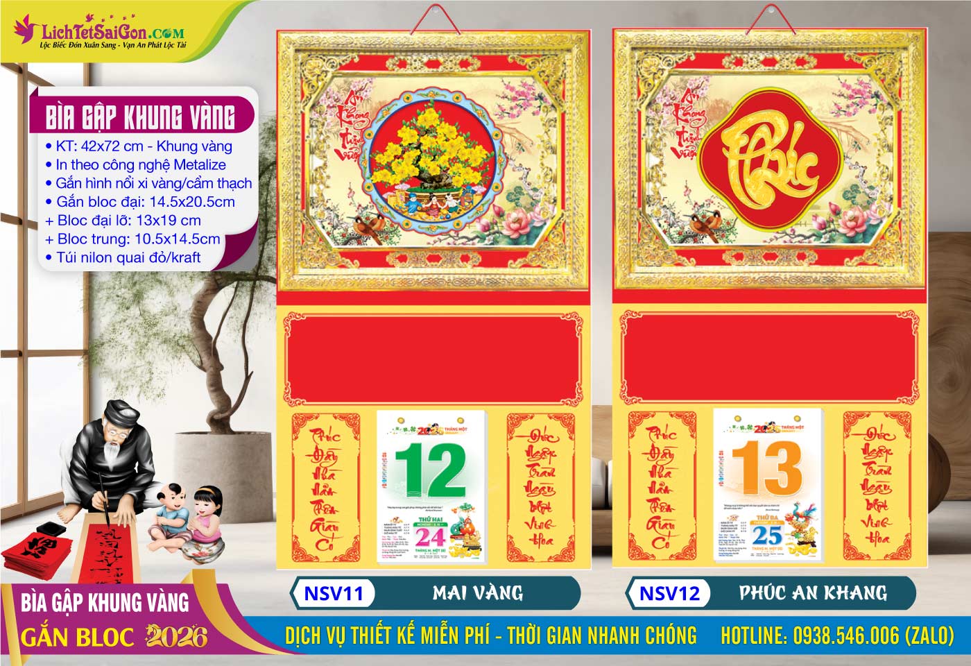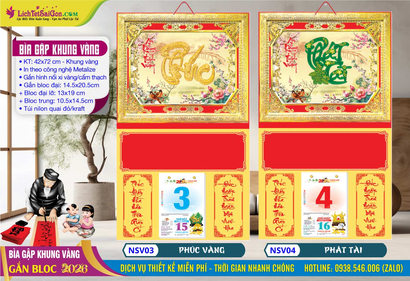 2- Bìa Gập (42×72) Khung Vàng – MS: NSV03 – Phúc Vàng + MS: NSV04 – Phát Tài => Click Xem Full Hình