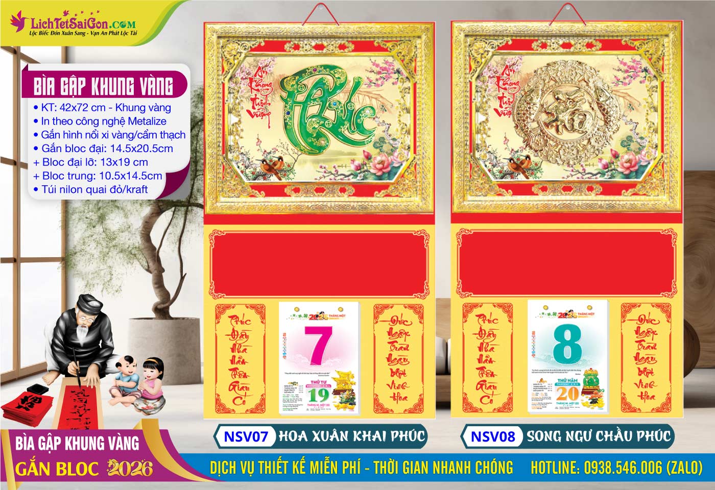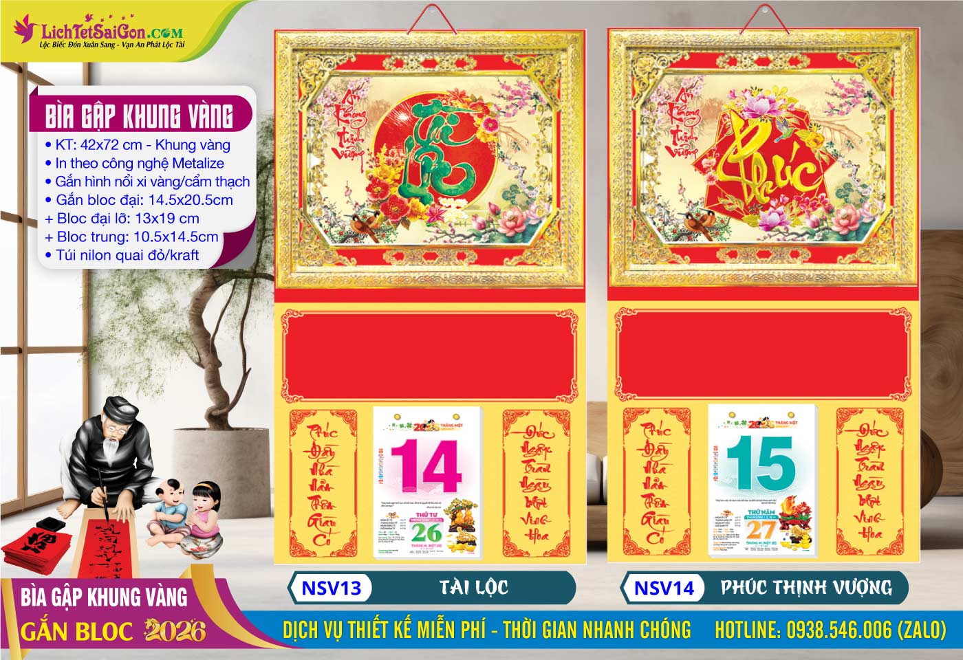 7- Bìa Gập (42×72) Khung Vàng – MS: NSV13 – Tài Lộc + MS: NSV14 – Phúc Thịnh Vượng => Click Xem Full Hình