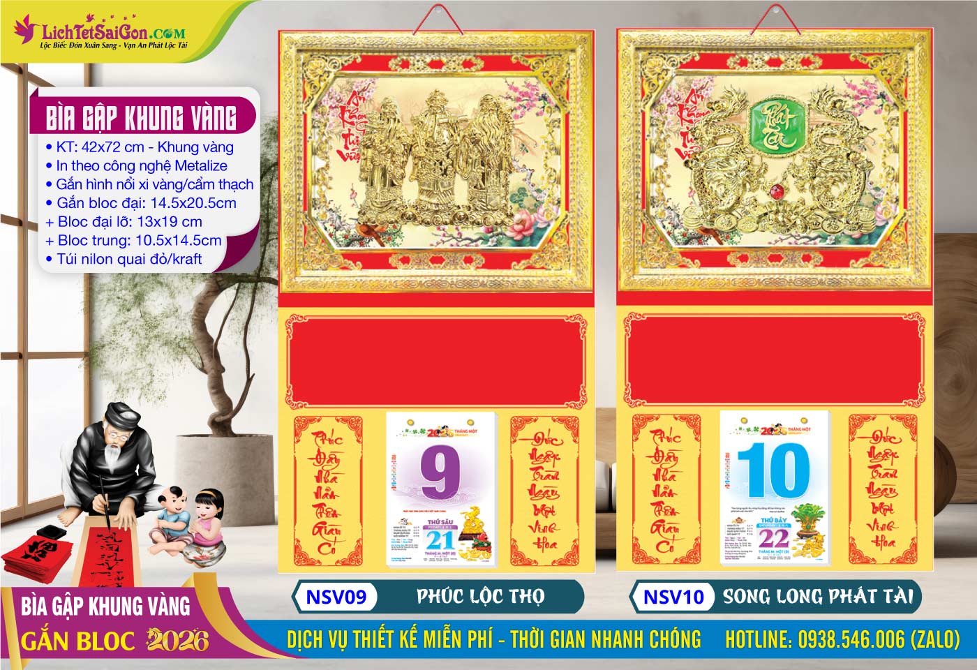 5- Bìa Gập (42×72) Khung Vàng – MS: NSV09 – Phúc Lộc Thọ + MS: NSV10 – Song Long Phát Tài=> Click Xem Full Hình