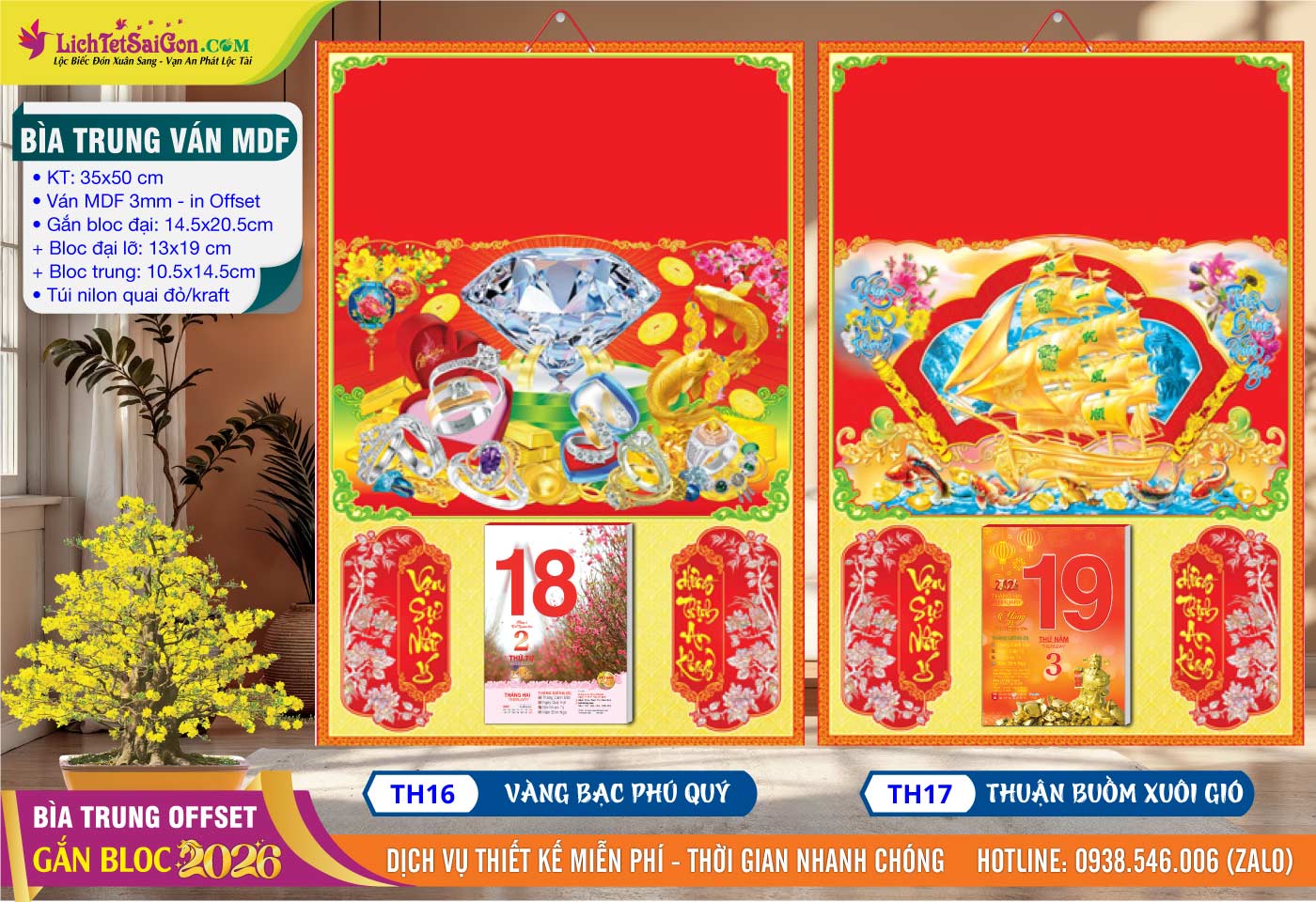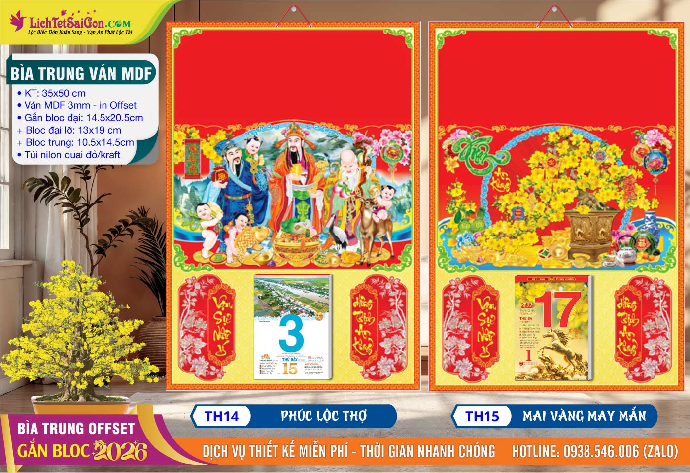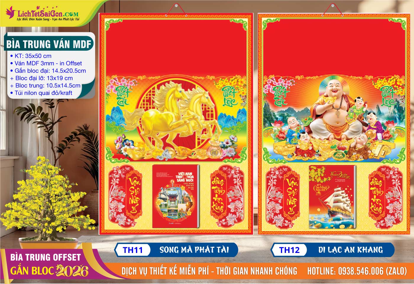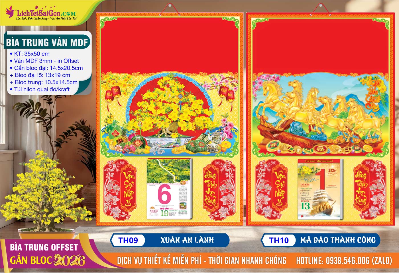 Bìa Lịch Trung (35×50), Bìa Trung Ván MDF, Bìa Lịch Trung Gắn Bloc 2025