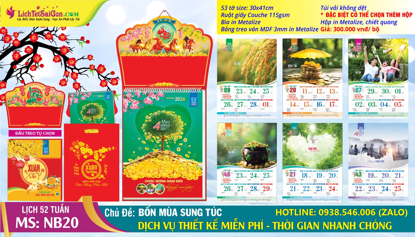 Lịch 52 Tuần | Mã Số: NB20 – Bốn Mùa Sung Túc