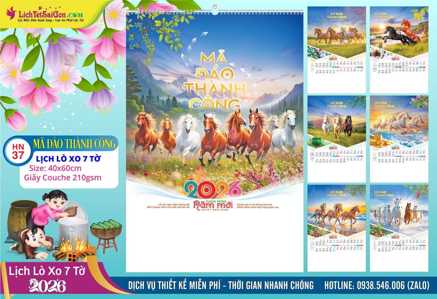 1) Lịch Lò Xo 7 Tờ | Mã Số: HN37 – Mã Đáo Thành Công