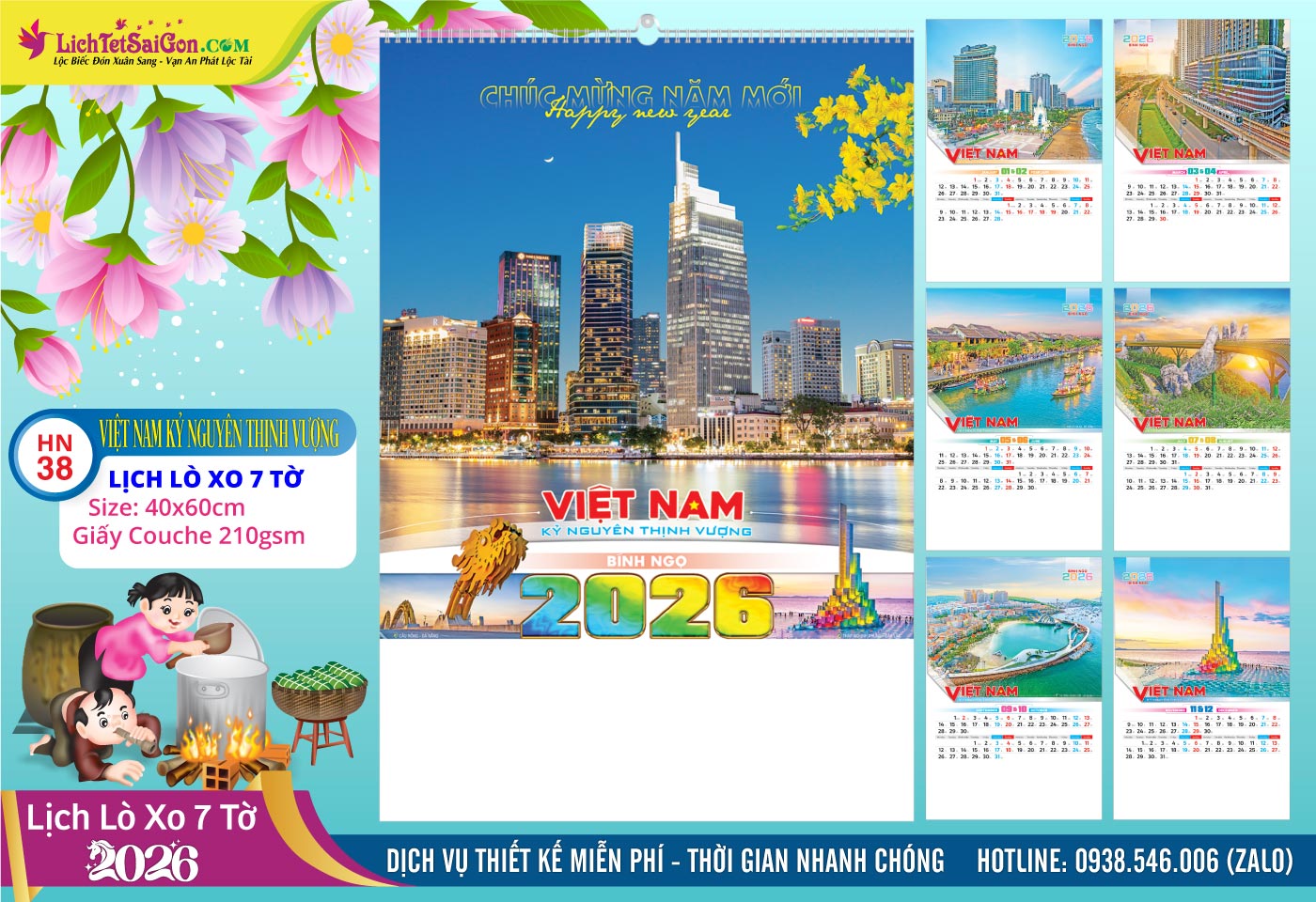 2) Lịch Lò Xo 7 Tờ | Mã Số: HN38 – Việt Nam Kỷ Nguyên Thịnh Vượng