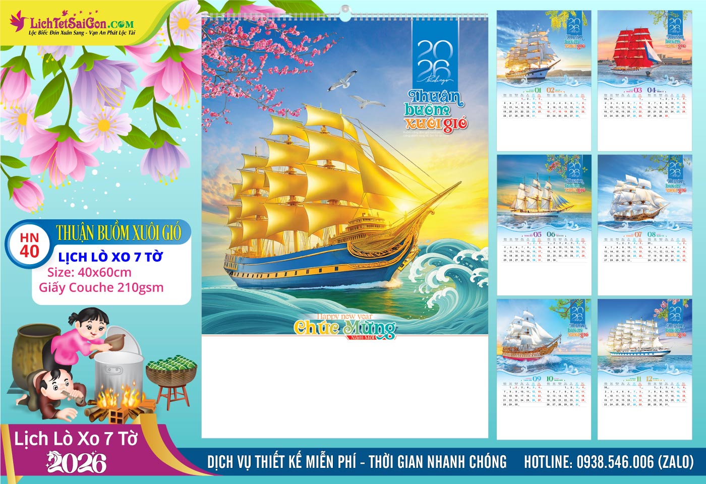 4) Lịch Lò Xo 7 Tờ | Mã Số: HN40 – Thuận Buồm Xuôi Gió