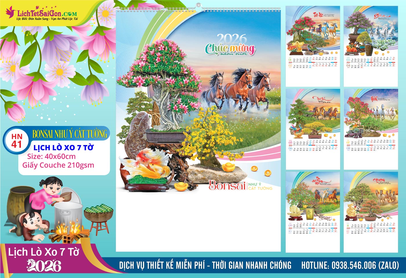 5) Lịch Lò Xo 7 Tờ | Mã Số: HN41 – Bonsai Như Ý Cát Tường