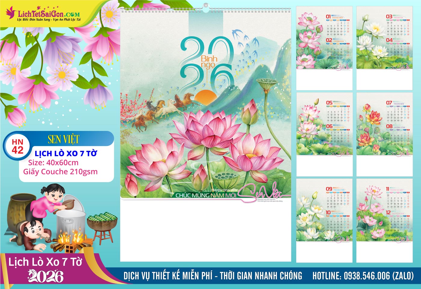 6) Lịch Lò Xo 7 Tờ | Mã Số: HN42 – Sen Việt
