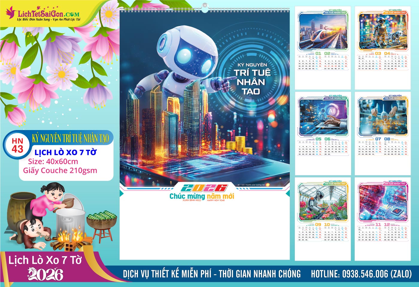 7) Lịch Lò Xo 7 Tờ | Mã Số: HN43 – Kỷ Nguyên Trí Tuệ Nhân Tạo