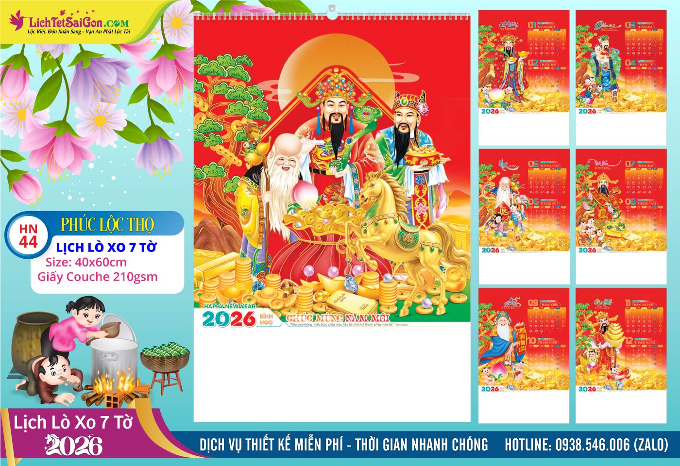 8) Lịch Lò Xo 7 Tờ | Mã Số: HN44 – Phúc Lộc Thọ