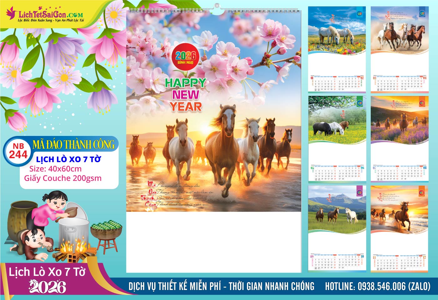 9) Lịch Lò Xo 7 Tờ | Mã Số: NB244 – Mã Đáo Thành Công