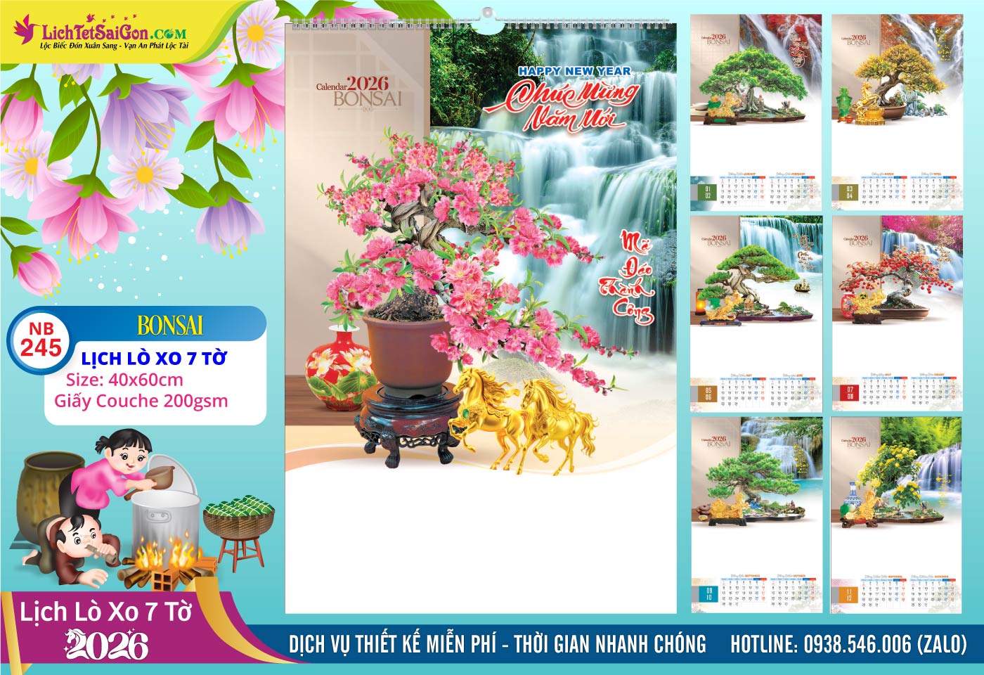 10) Lịch Lò Xo 7 Tờ | Mã Số: NB245 – Bonsai