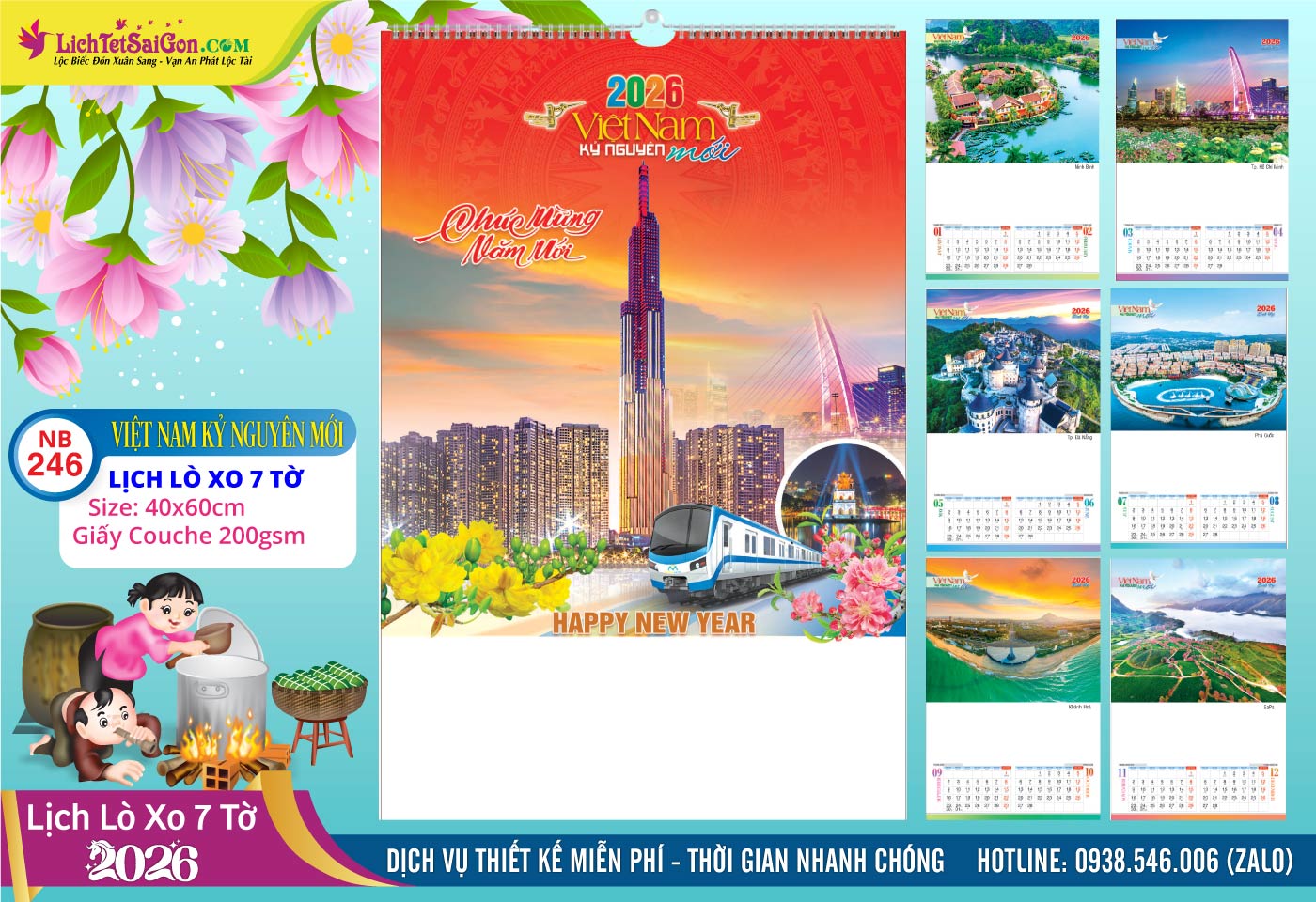 11) Lịch Lò Xo 7 Tờ | Mã Số: NB246 – Việt Nam Kỷ Nguyên Mới