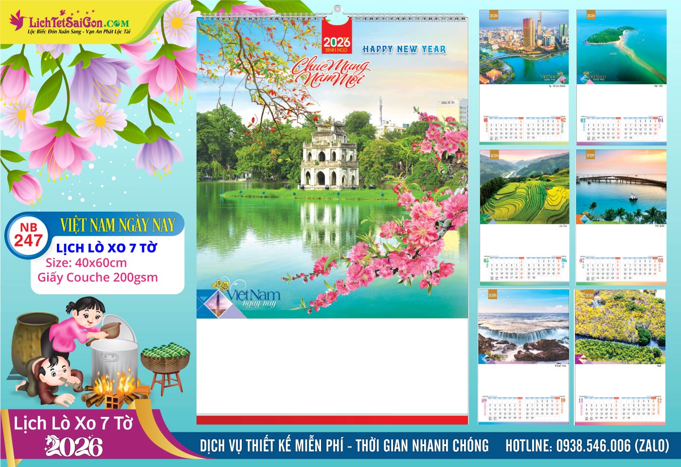 12) Lịch Lò Xo 7 Tờ | Mã Số: NB247 – Việt Nam Ngày Nay