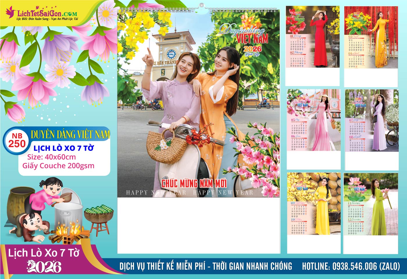 15) Lịch Lò Xo 7 Tờ | Mã Số: NB250 – Duyên Dáng Việt Nam
