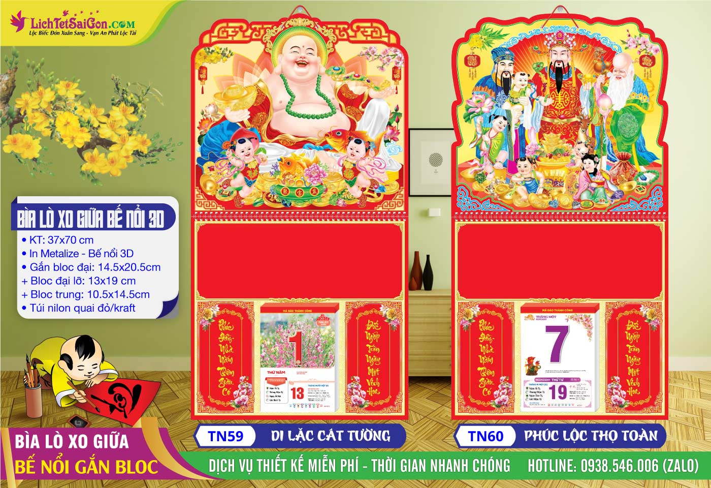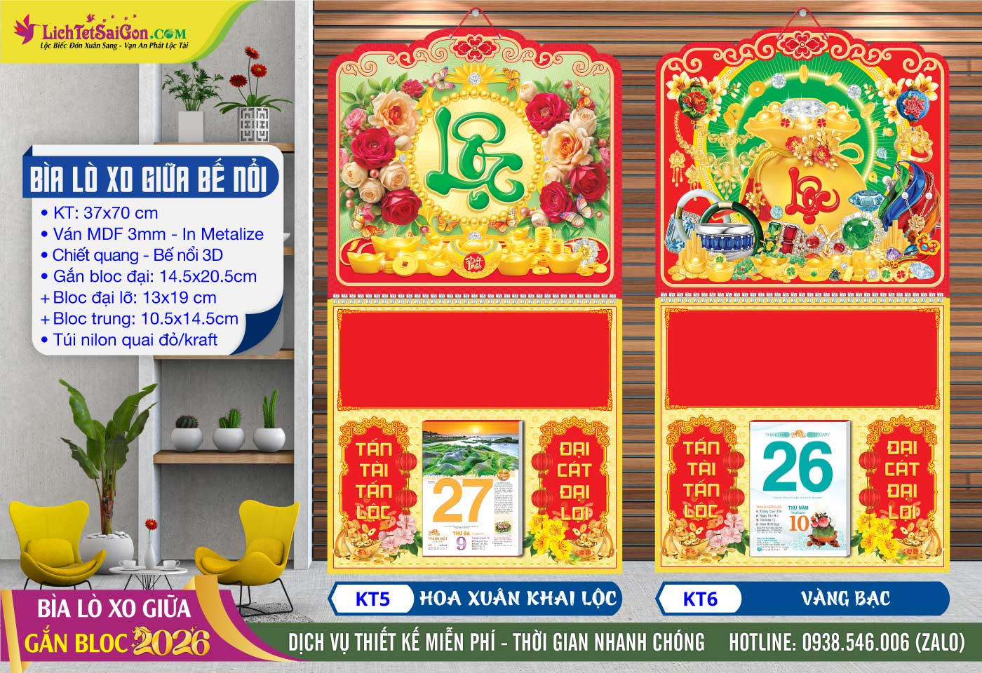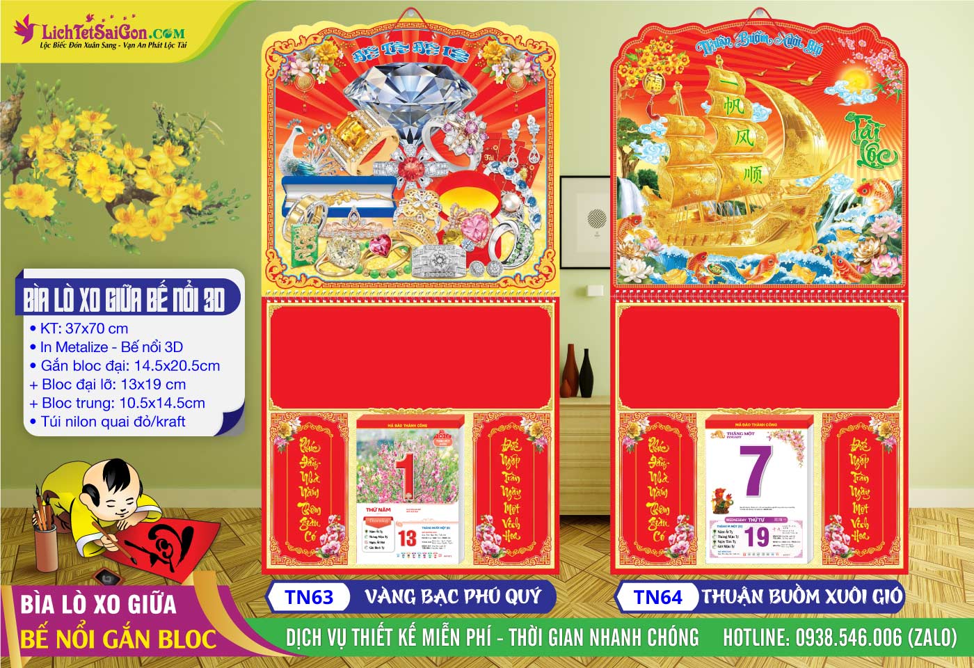 Bìa Lò Xo Giữa Gắn Bloc 2026 giá tốt nhất Q.5 – LH: 0938 546 006 zalo. Bìa có 2 loại: Bìa lò xo giữa bế nổi và bìa lò xo dán hình nhựa nổi xi vàng hoặc cẩm thạch. Đây là 2 mẫu bìa lịch gắn bloc được yêu thích nhất hiện nay. Bìa Lò xo giữa (37×70) gắn bloc in Chiết Quang Hologam 7 màu cao cấp, phản chiếu gây chú ý ở tầm nhìn xa, giá cả hợp lý, rất thích hợp làm quà tết.