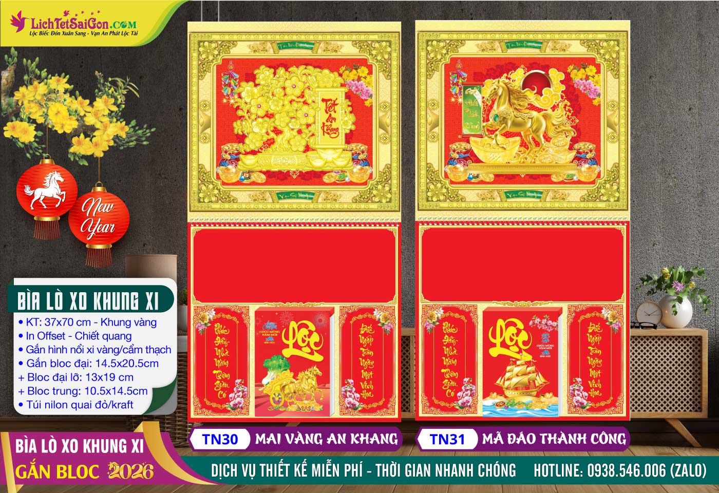 6 – Bìa Lò Xo Khung Vàng – TN30 – Mai Vàng An Khang + TN31 – Mã Đáo Thành Công