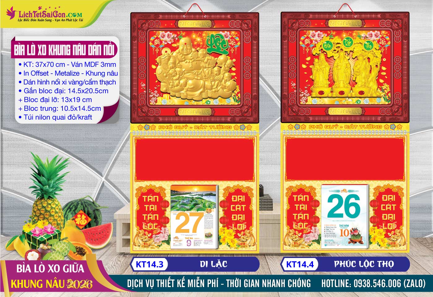 2 – Bìa Lò Xo (37x70cm) Khung Nâu – KT14.3 – Di Lặc + KT14.4 – Phúc Lộc Thọ