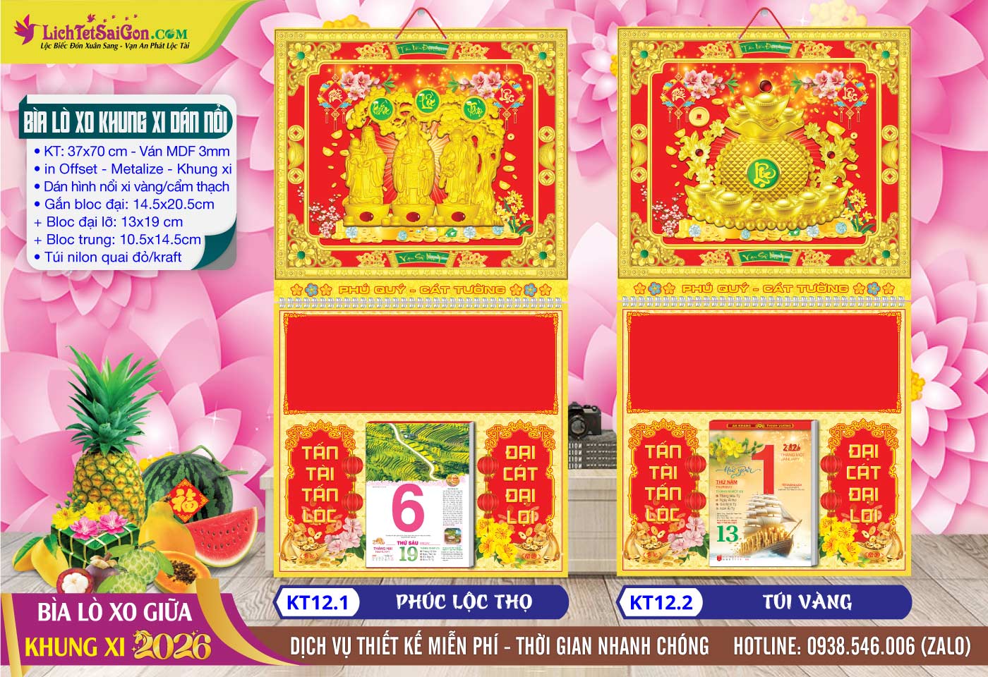 1- Bìa Lò Xo (37x70cm) Khung Xi – KT12.1 – Phúc Lộc Thọ + KT12.2 – Túi Vàng